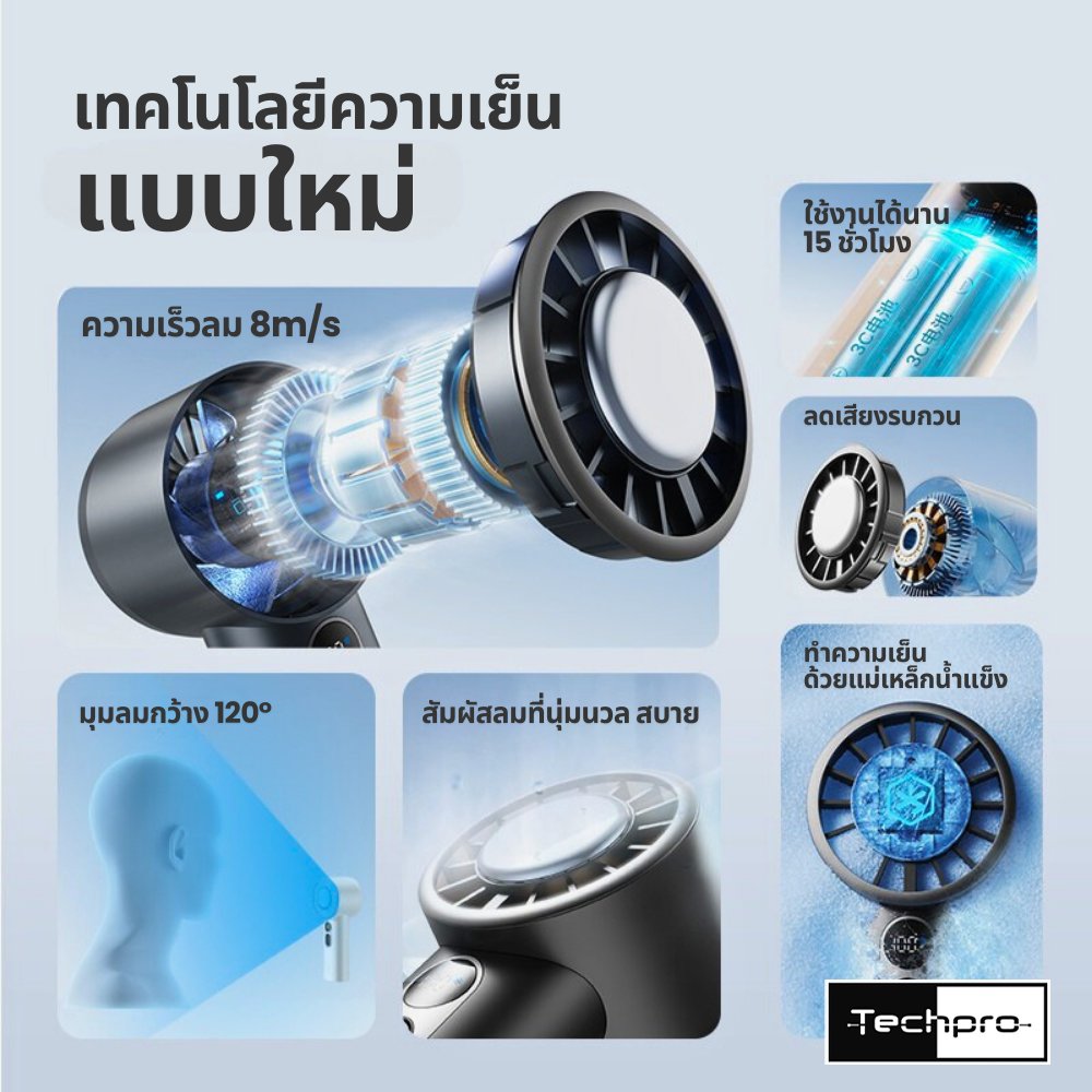 พัดลมพกพาขนาดแบตเตอรี่ 3600 mAh รุ่น Engine Ice