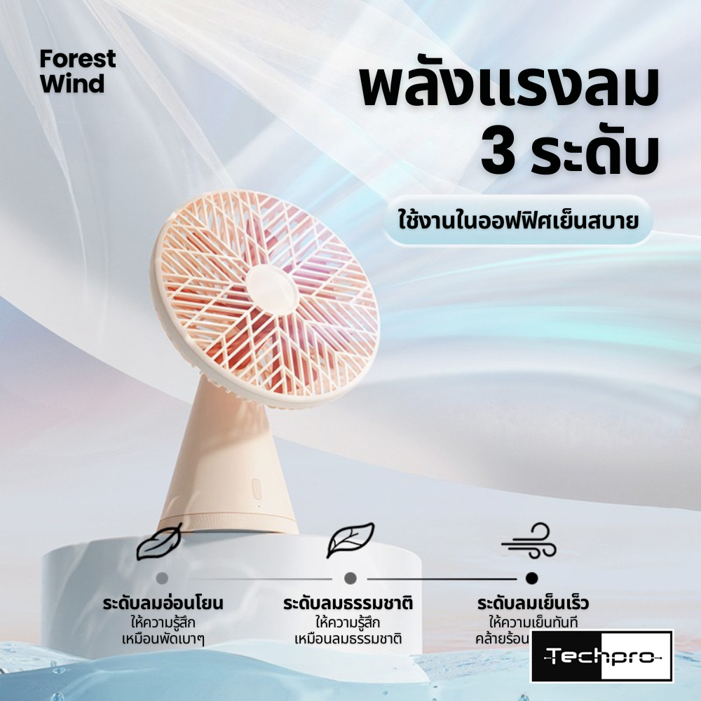 พัดลมตั้งโต๊ะขนาดแบตเตอรี่ 4000 mAh รุ่น Forest Pro