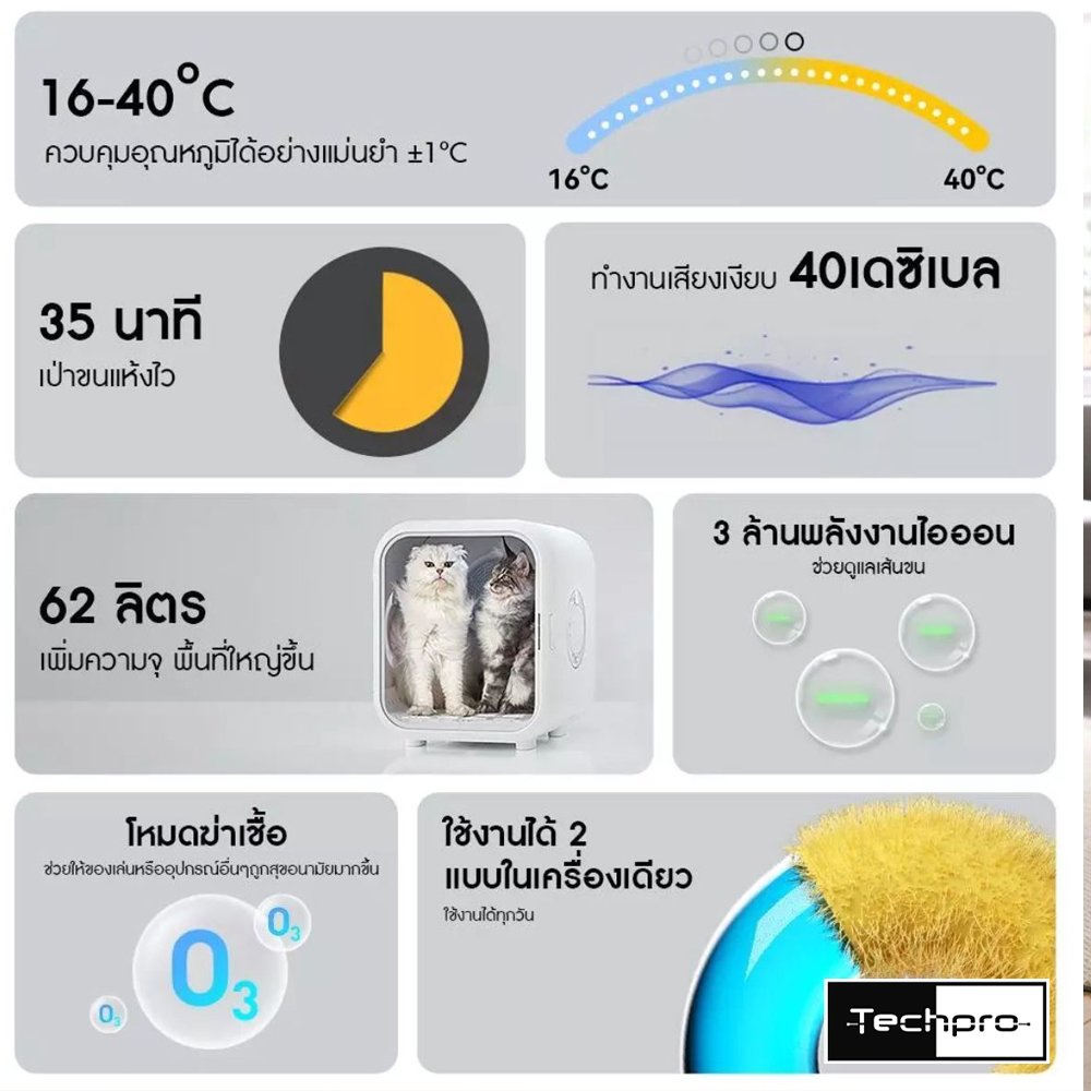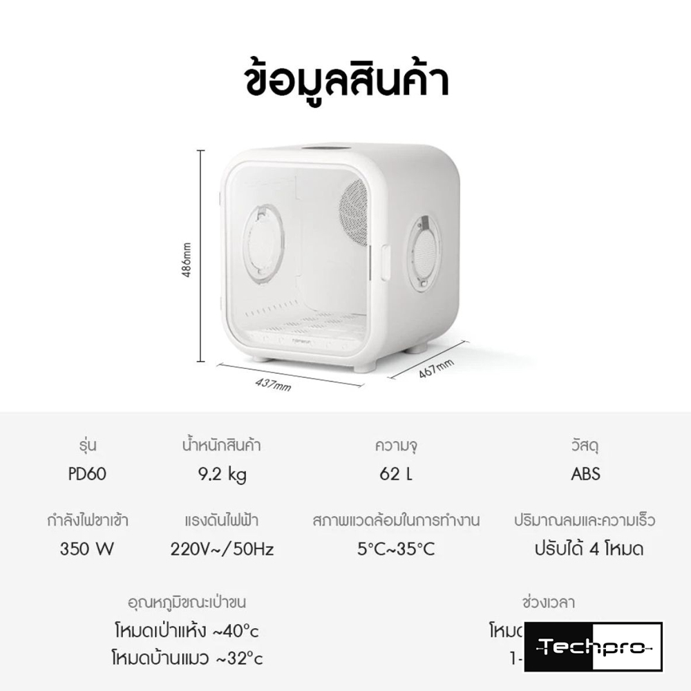 ตู้เป่าขนสัตว์เลี้ยงความจุขนาด 62 ลิตร รุ่น PD60