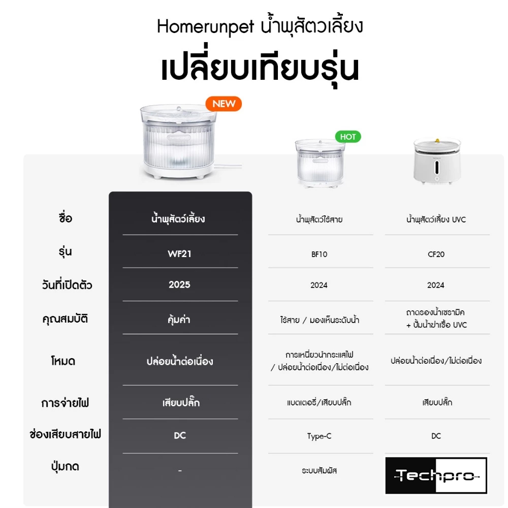 HomeRunPet Pet Wireless Water Fountain BF10 น้ำพุสัตว์เลี้ยงไร้สายถังเก็บน้ำขนาด 2 ลิตร BF10