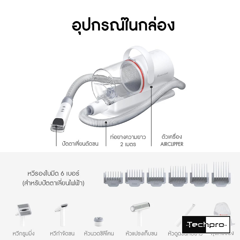 - อุปกรณ์ภายในกล่อง : ตัวเครื่อง, ท่อยาง ยาว2เมตร, บัตตาเลี่ยนตัดขน, หวีรองใบมีด 6 เบอร์,หวีกรูมมิ่ง, หวีกำจัดขน, หัวนวดซฺิลิโคน, หัวแปรงเก็บขน, หัวดูดขนท่อยาว, ถุงเก็บของ