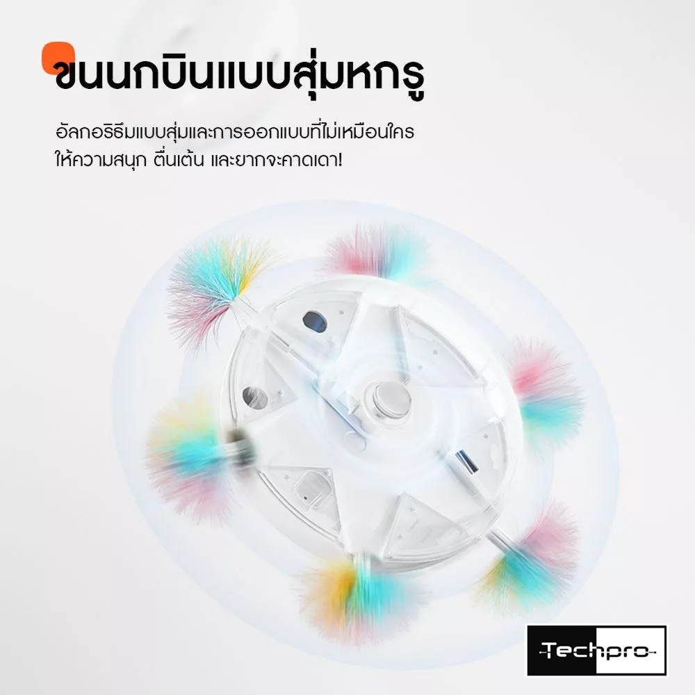 • เครื่องเล่นจะสุ่มขนนกให้ออกตามรูทั้ง 6 รอบของเล่น เพื่อเป็นการล่อน้องแมว