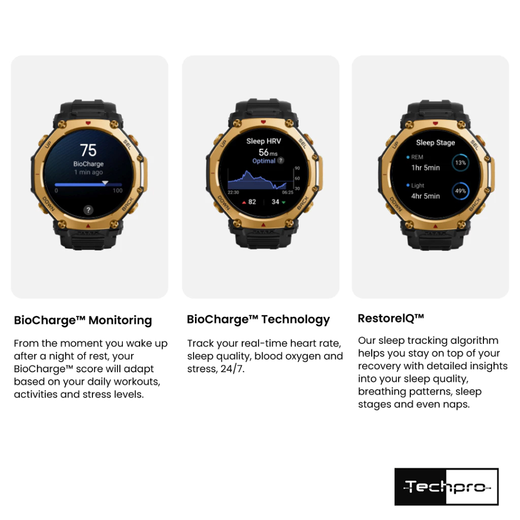- BioCharge™ ตรวจจับการเผาผลาญพลังงาน, ตรวจวัดค่าอัตราการเต้นของหัวใจ อ็อกซิเจนในเลือด