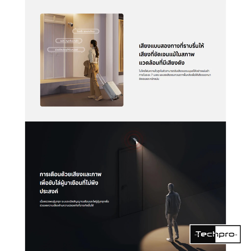 - สามารถตั้งค่าให้กล้องส่งเสียงพร้อมส่องไฟเมื่อตรวจจับบุคคลเดินเข้าสู่พื้นที่ที่กำหนดไว้ได้