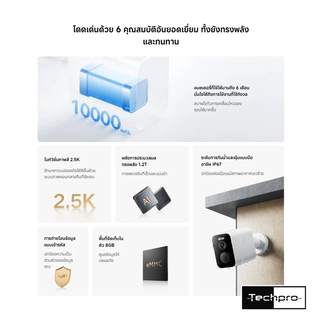 - อุปกรณ์ภายในกล่อง : กล้องถ่ายรูป x1, ขายึด x1, สายชาร์จ x1, สติกเกอร์เทมเพลตสำหรับติดตั้ง x1, พุ๊กเหล็ก x4, สกรู x4, ป้ายคำเตือน x1, คู่มือผู้ใช้ x1