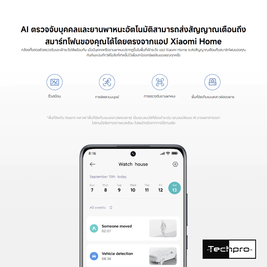 • มี AI Human Detection ตรวจจับบุคคลได้ และตั้งค่าให้แจ้งเตือนผ่านแอพ Mi Home