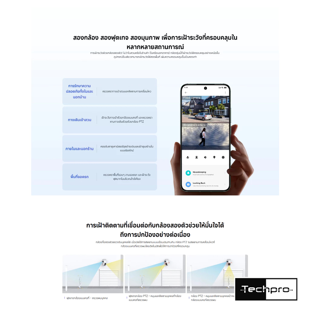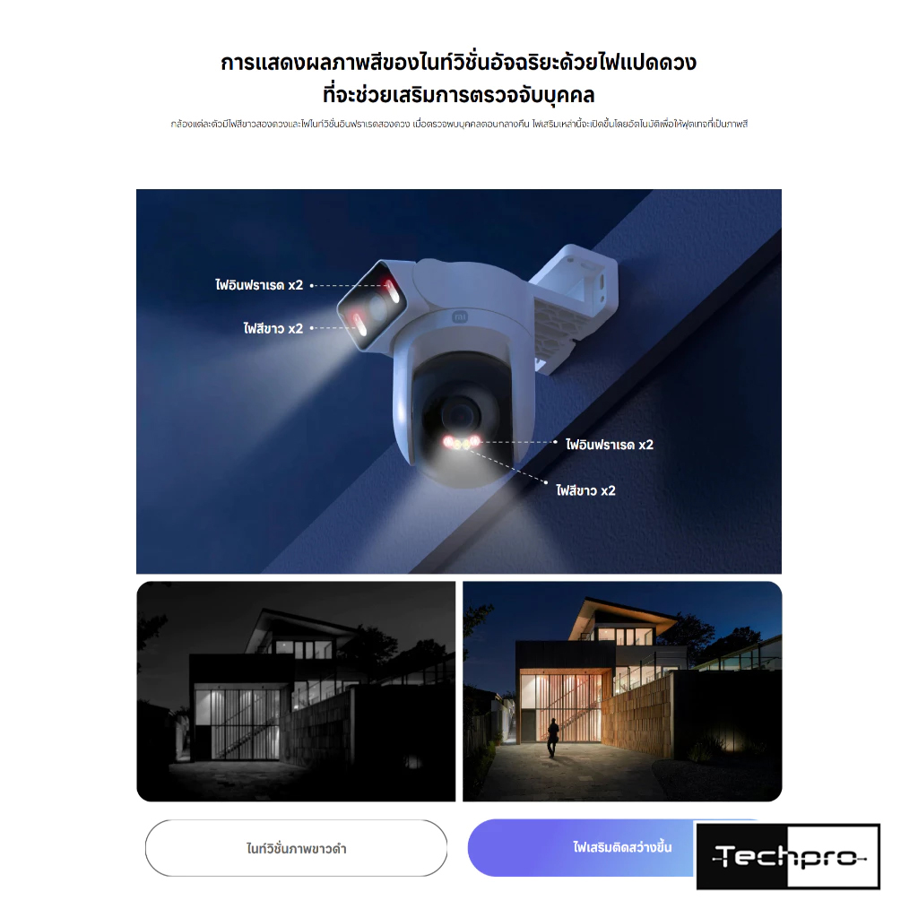 • เห็นภาพสีชัดเจนแม้ในยามค่ำคืน พร้อมแสงไฟที่ส่องสว่างเองเมื่อตรวจจับบุคคล