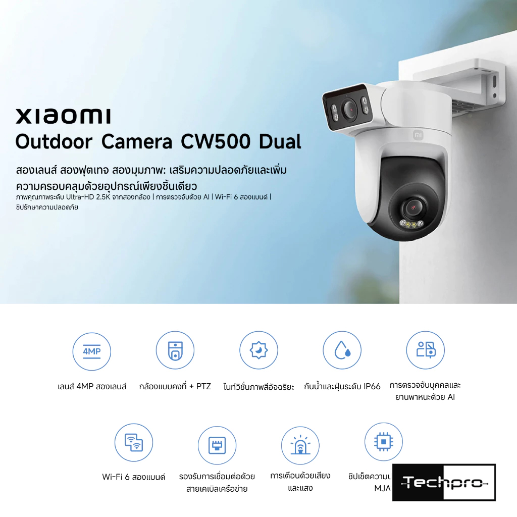 Xiaomi Outdoor Camera CW500 Dual กล้องวงจรปิดติดภายนอกความละเอียด 2.5K สองเลนส์ สองฟุตเทจ สองมุมภาพเสริมความปลอดภัย รุ่น CW500 Dual