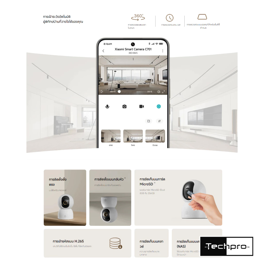 - ปรับมุมกล้องได้ทั้งแนวตั้งและแนวนอน (360° panorama)