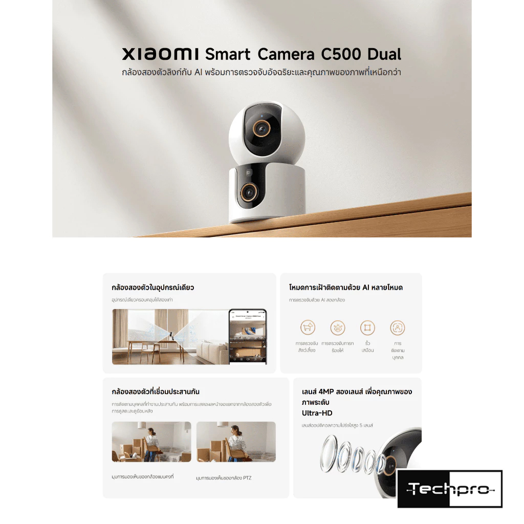 กล้องวงจรปิดภายในความละเอียด 2.5K กล้องสองตัวลิงก์กับ AI พร้อมการตรวจจับอัจฉริยะ รุ่น C500 Dual