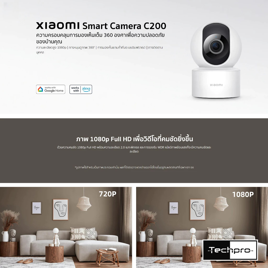 กล้องวงจรปิดภายในความละเอียด 1080P ครอบคลุมการมองเห็นเต็ม360องศา รุ่น C200